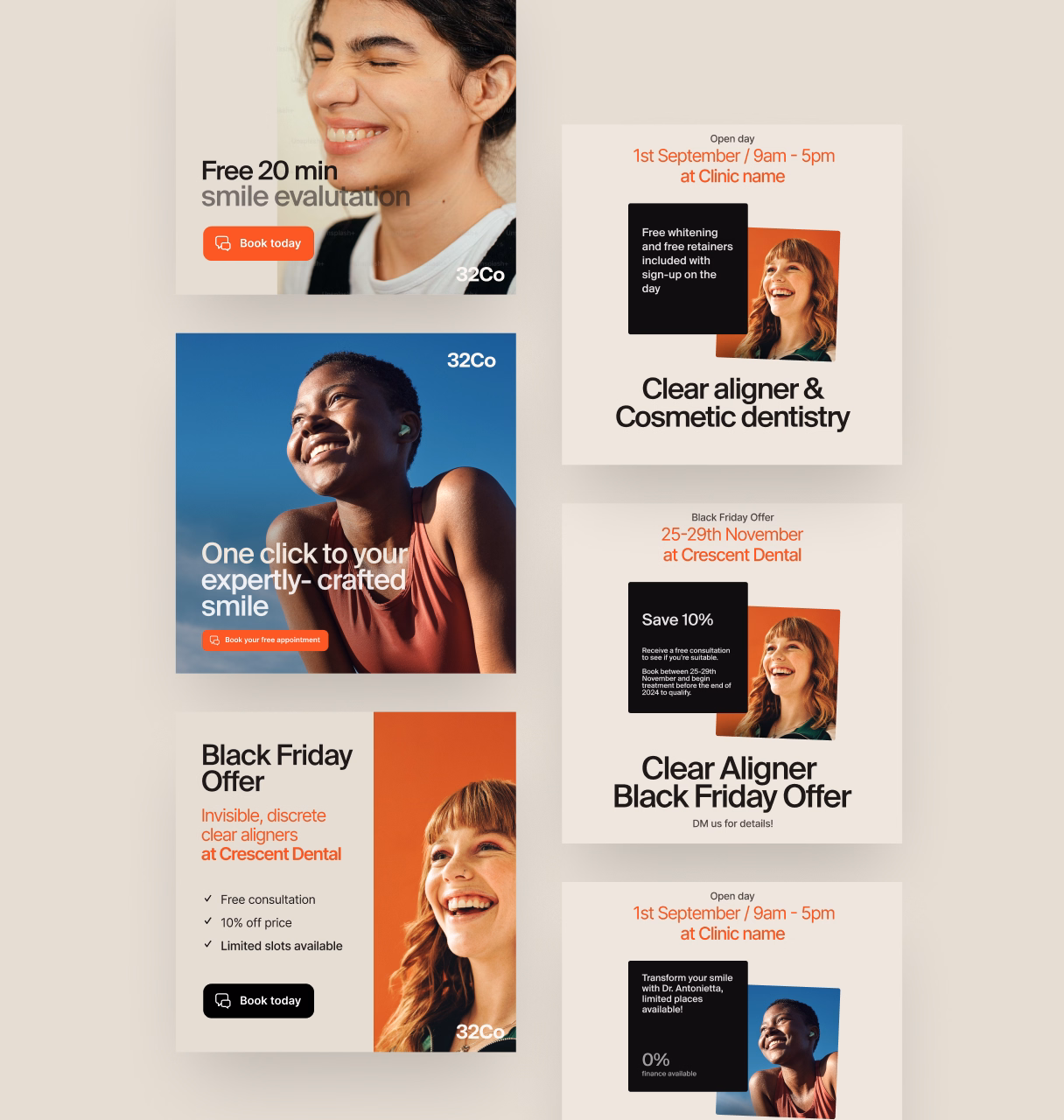 Customisable social media templates to promote Clear Aligners on Facebook and Instagram